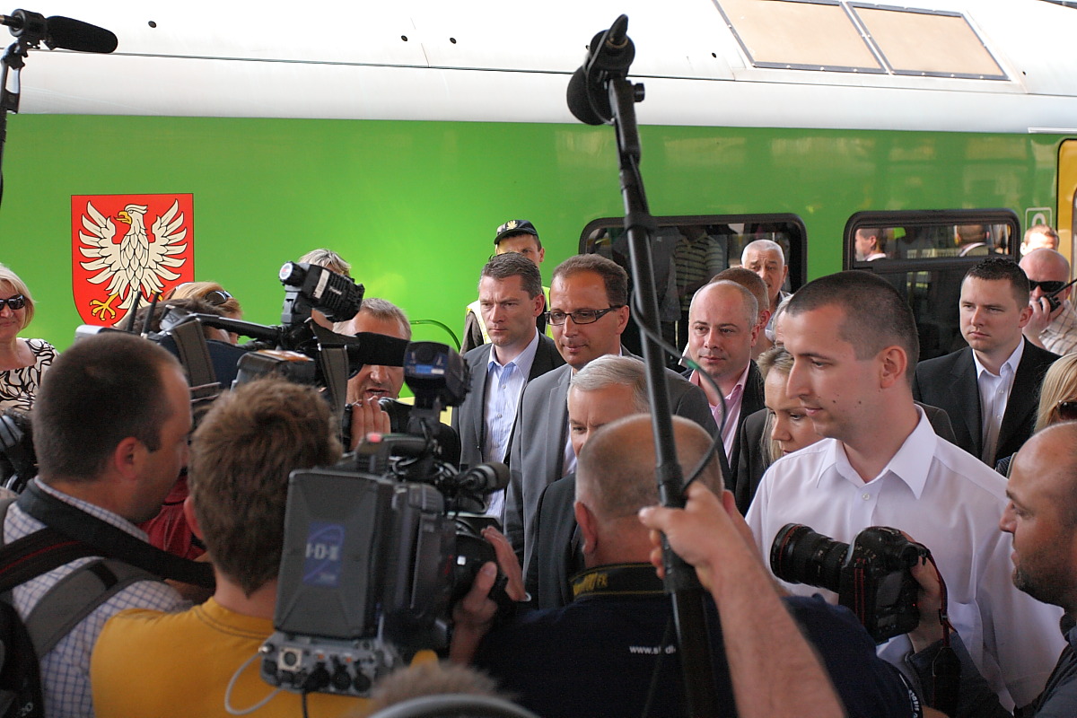 Punktualnie o godzinie 11:31 wjechał na trzeci peron pociąg Kolei Mazowieckich – Flirt – wraz z kandydatem na prezydenta RP – Jarosławem Kaczyńskim. Z wagonu razem z prezesem PIS wysiadło także kilkudziesięciu dziennikarzy telewizyjnych i fotoreporterów z całego Kraju, którzy relacjonują wizytę.